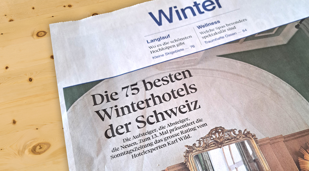 In the current rating of the «75 best winter hotels» in the Sonntagszeitung, we were able to maintain our position among the «25 best winter hotels with 4 stars» again this year, which we are very pleased about.