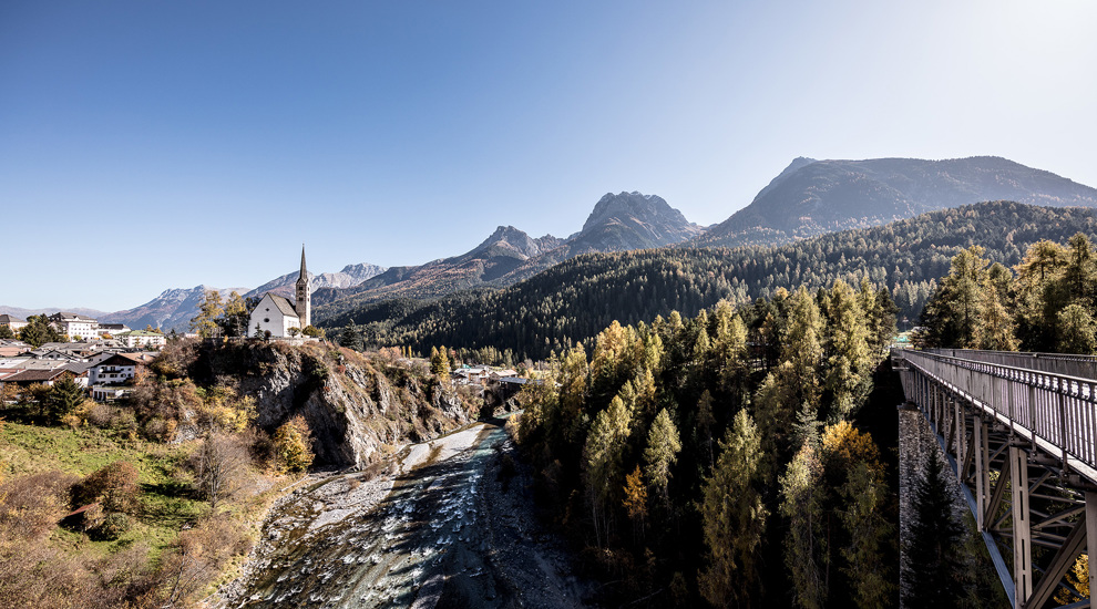 Tarasp is the only village in the Engadin that was not reformed, which is why we visit the Catholic church there. While we are there, we take a look at Tarasp Castle before hiking via Vulpera to Scuol, where we admire the Engadin Museum.